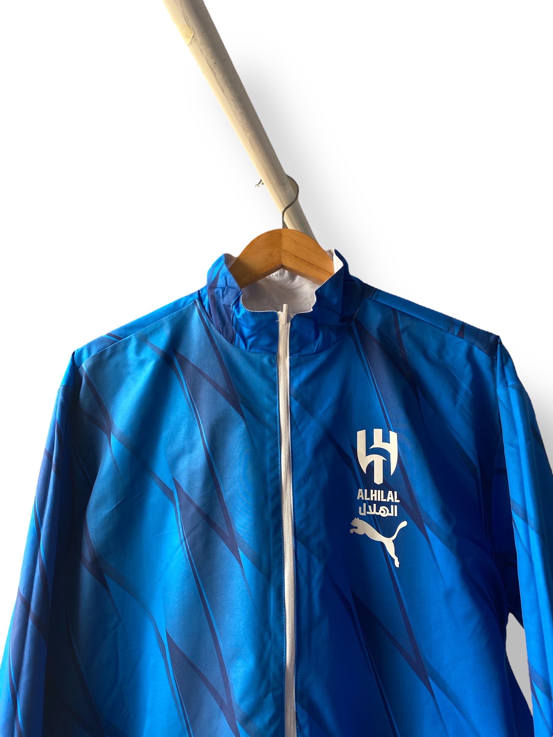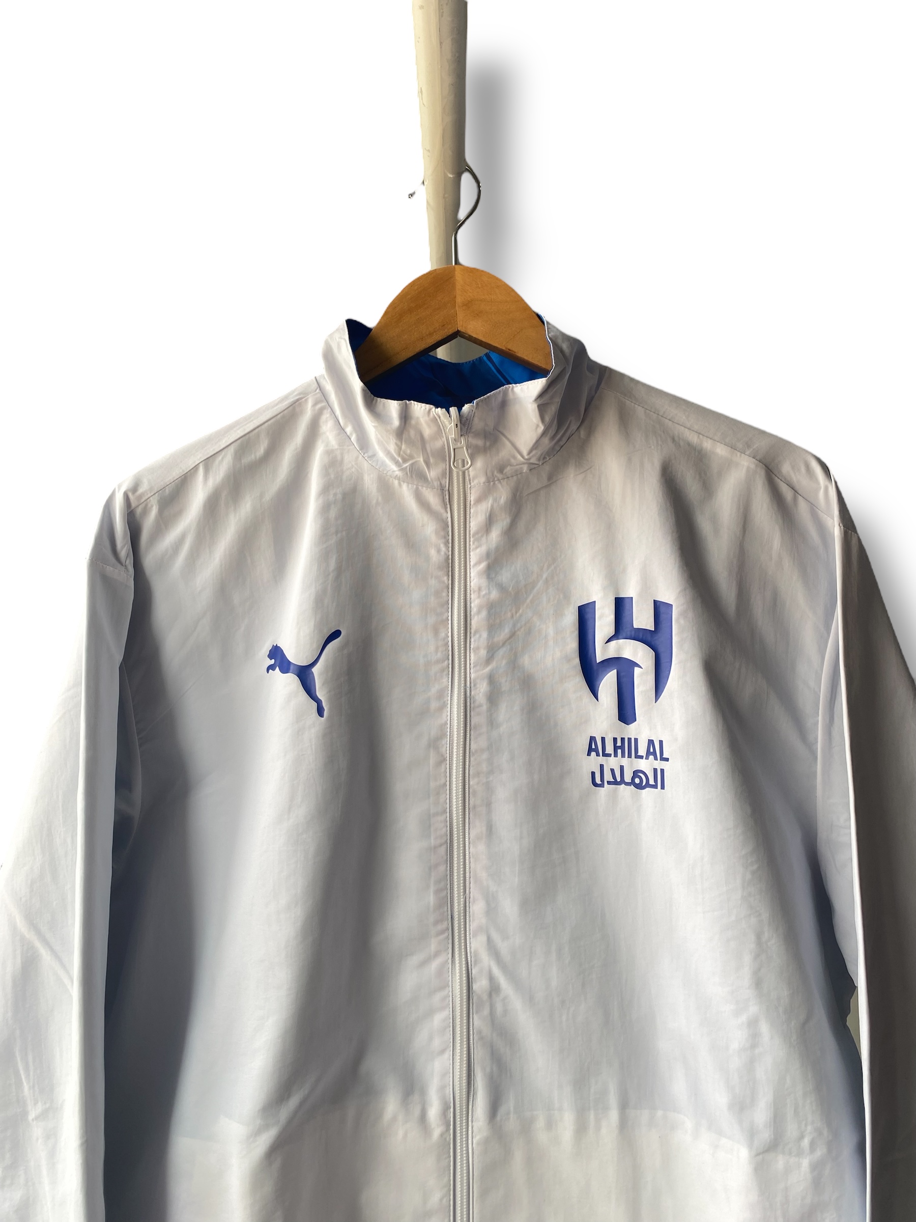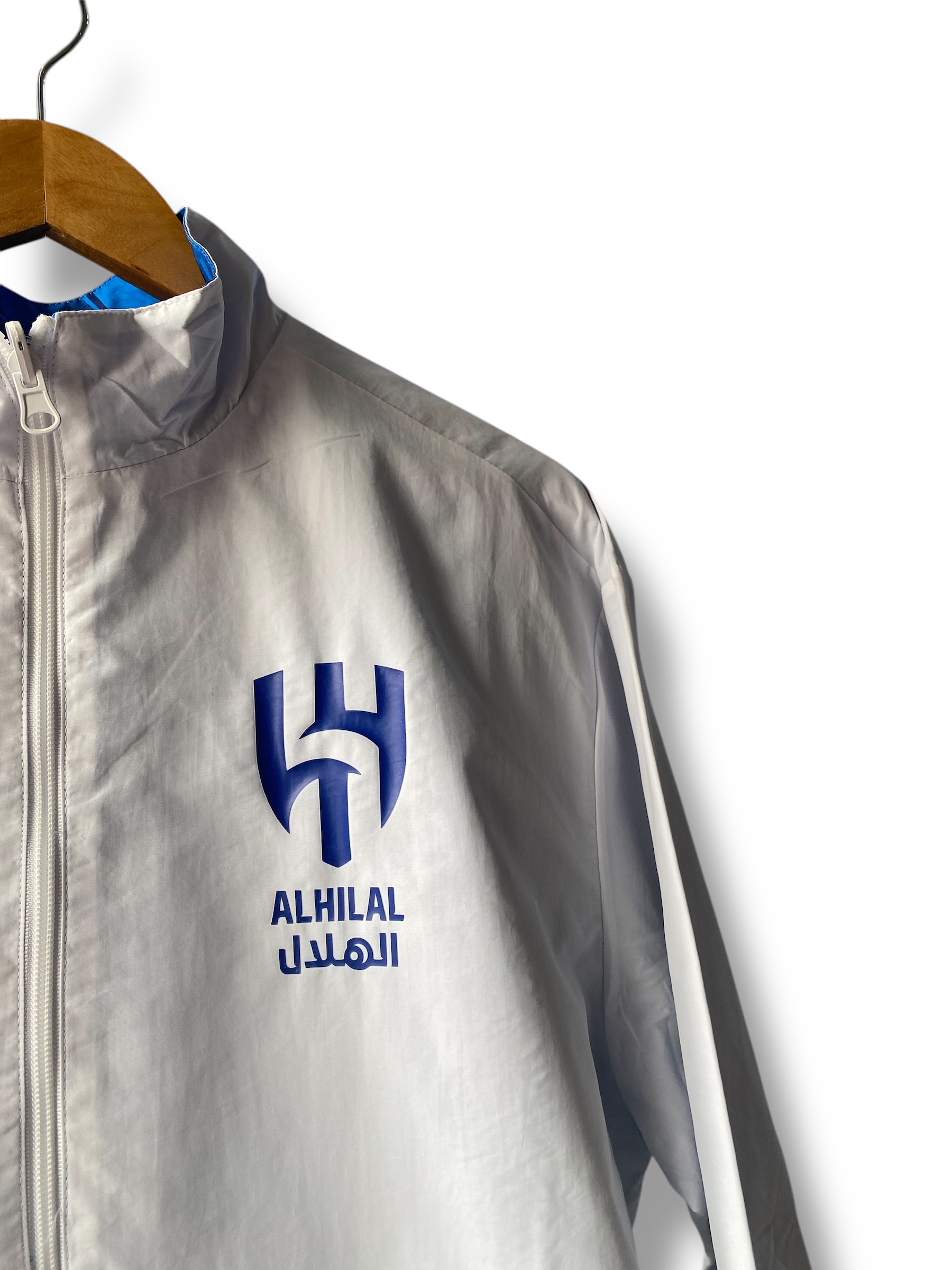 جاكيت نادي الهلال السعودي دبل فيس باللونين الأزرق والأبيض