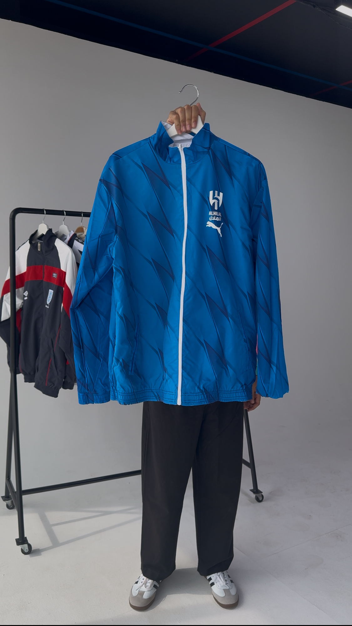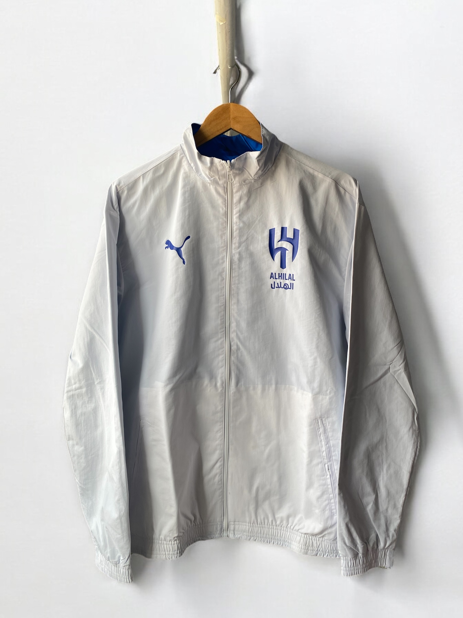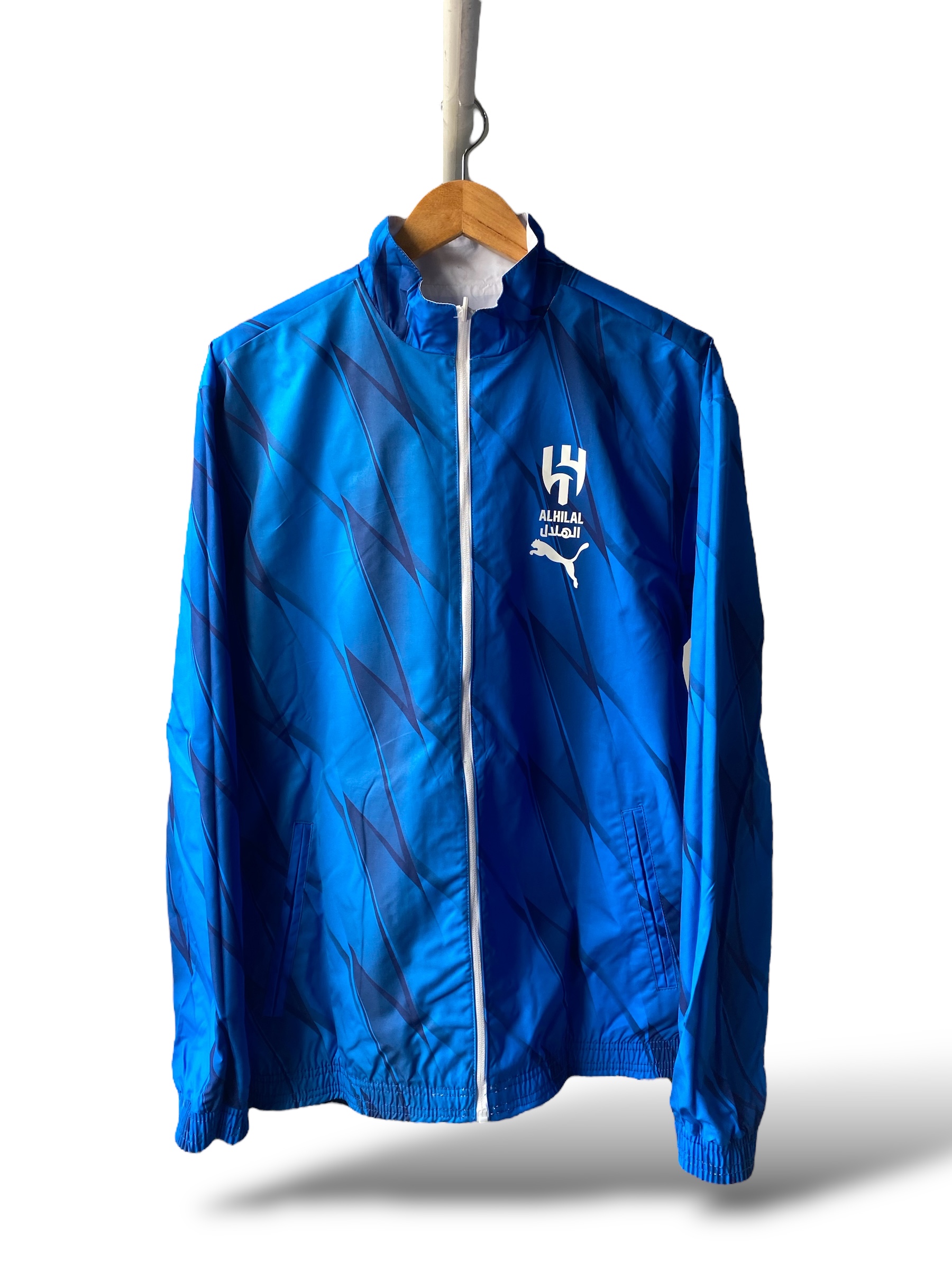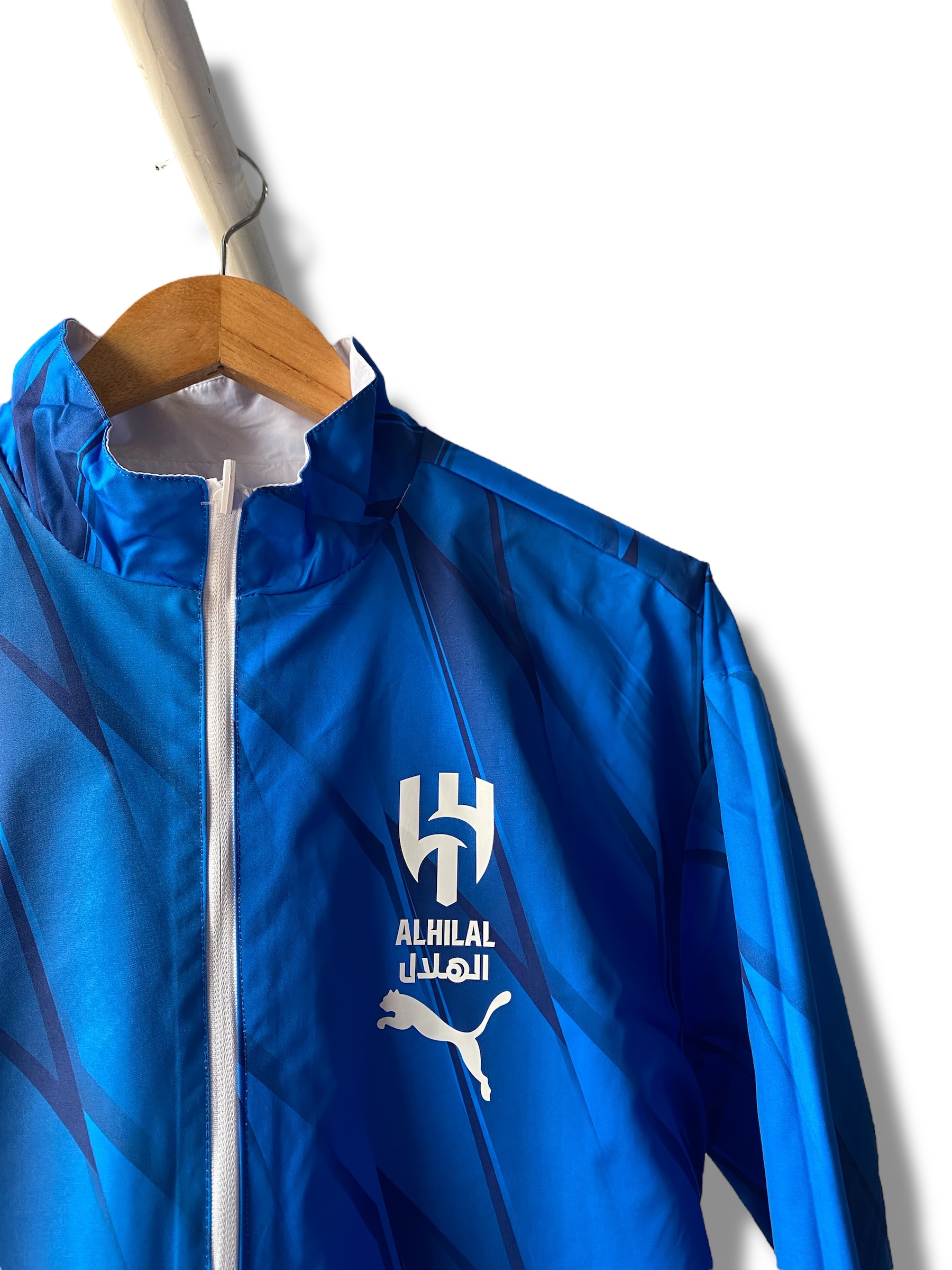 جاكيت نادي الهلال السعودي دبل فيس باللونين الأزرق والأبيض